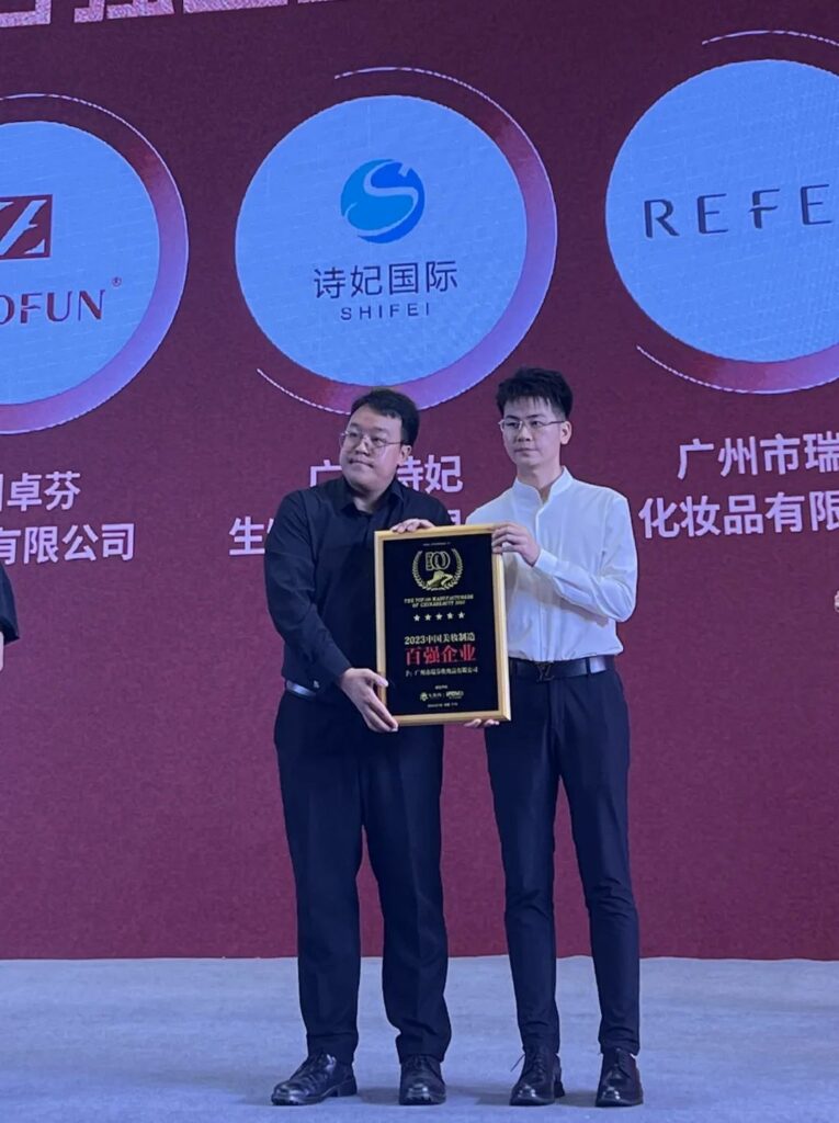 “2023中國(guó)美妝制造百?gòu)?qiáng)企業(yè)”的報(bào)名通道自5月24日啟動(dòng),共有1000+企業(yè)參與評(píng)選,經(jīng)過(guò)層層篩選與審核,瑞芬榮獲“2023中國(guó)美妝制造百?gòu)?qiáng)企業(yè)”稱號(hào)。