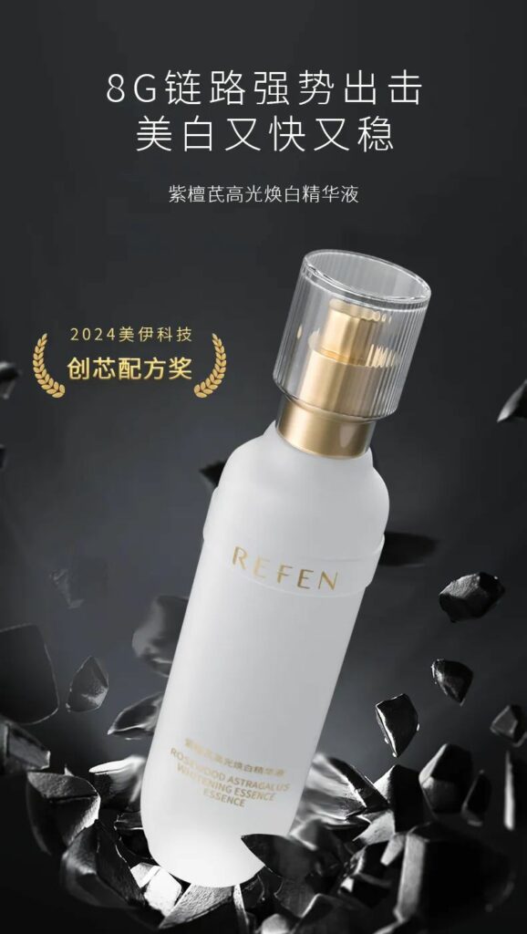 其中瑞芬明星爆品「紫檀芪高光煥白精華液」更是榮獲“2024美伊科技-創(chuàng)芯配方獎(jiǎng)”。